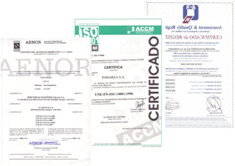 Asimismo, en materia de gestion medioambiental Inmarsa tiene homologado su sistema desde octubre de 2004 segun normativa UNE-EN ISO 14.001 y dispone de certificados emitidos por ACCM (Agencia para la Certificacion de la Calidad y el Medio Ambiente).